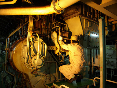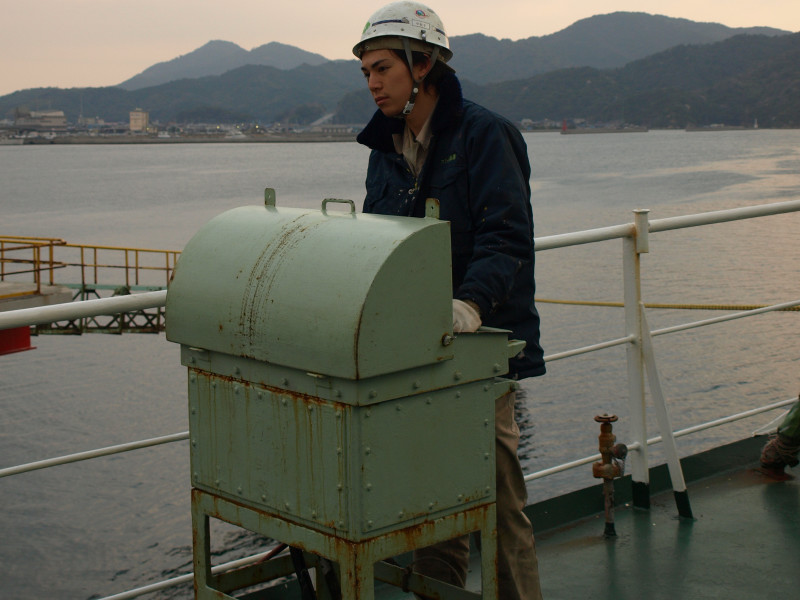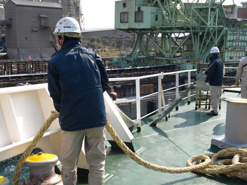 大量の石灰石が続々と荷積みされる間にも、船長の指示の下、船員たちは持ち場で出航に向けての準備に、慌ただしい時間を過ごす。